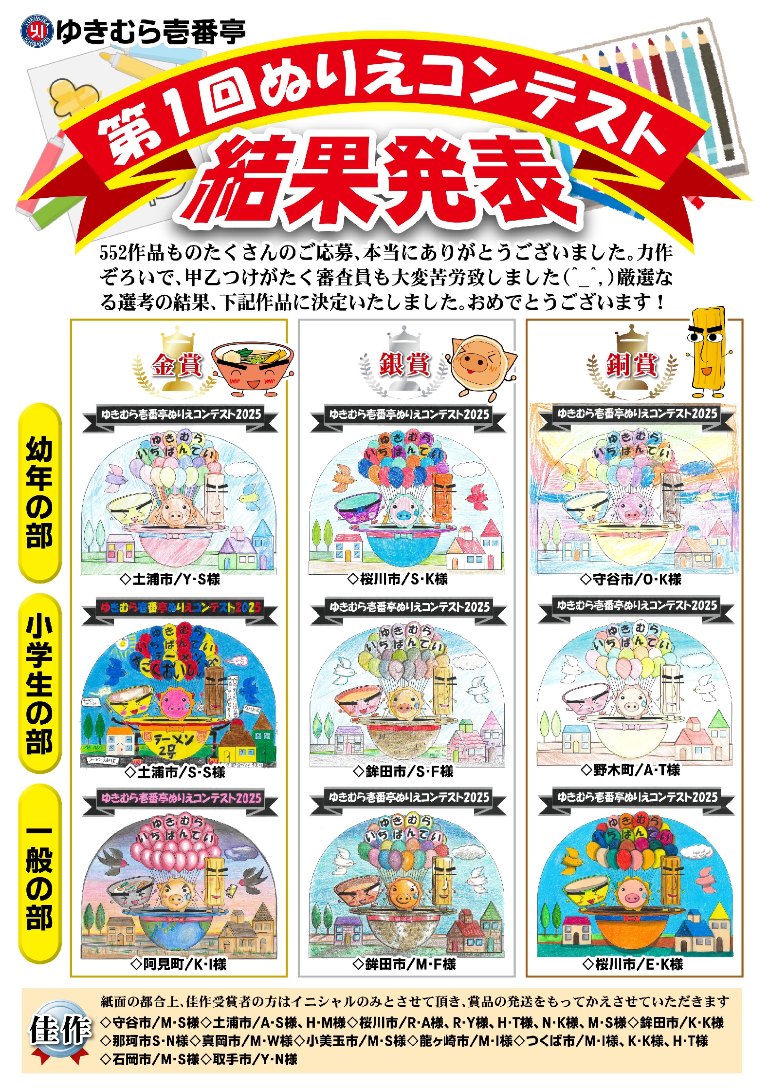 『第1回ぬりえコンテスト』入賞発表♪たくさんのご応募ありがとうございます!