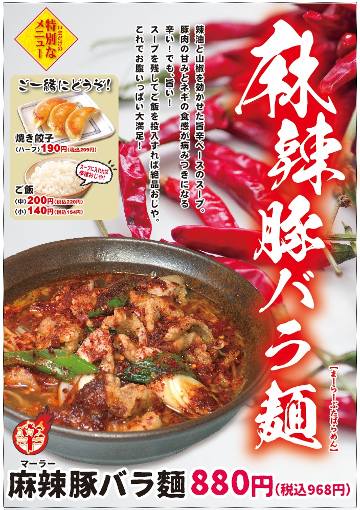 【ゆきむら亭】期間限定♪『麻辣豚バラ麺』スタート!