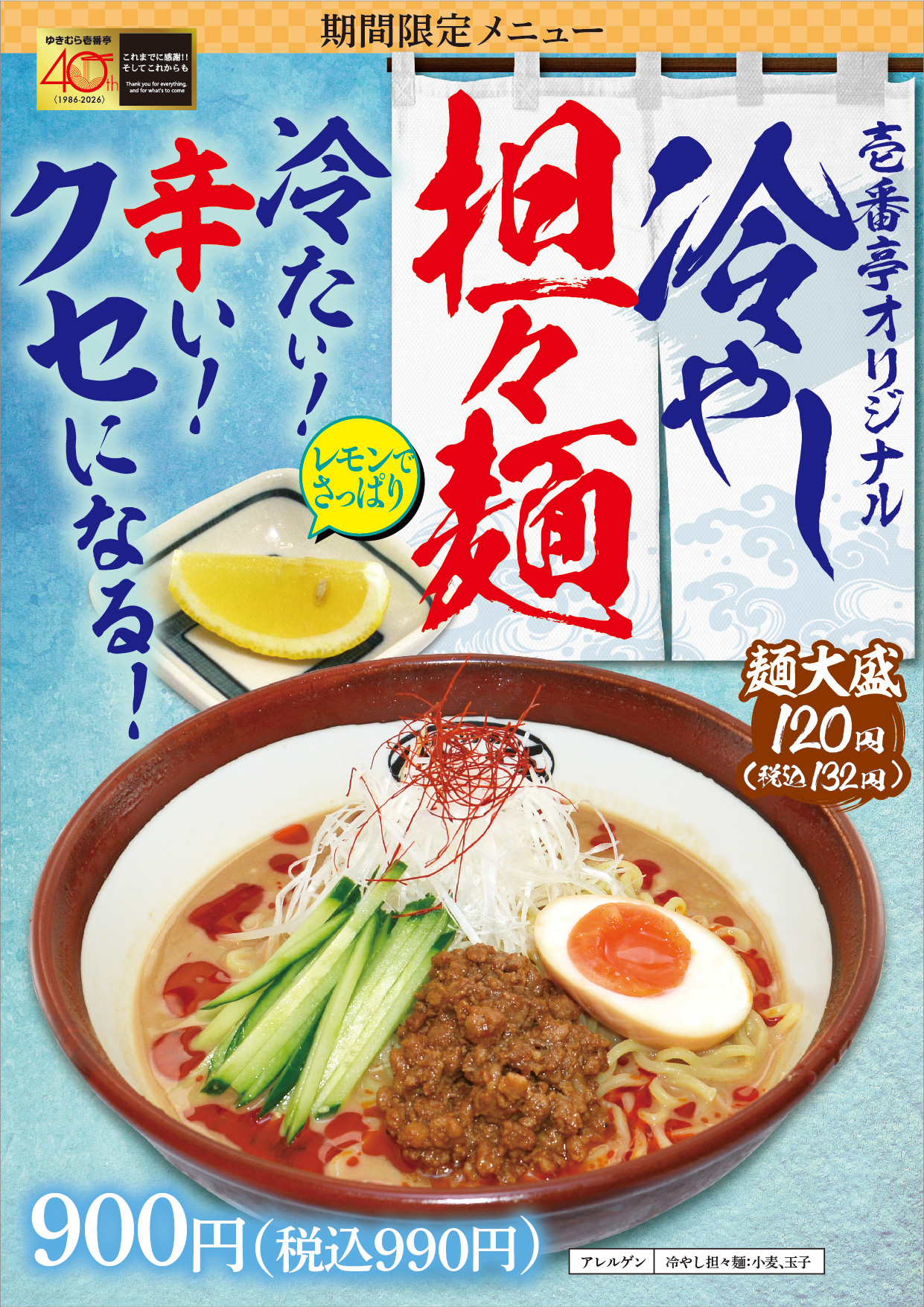 【ゆきむら亭】期間限定!『冷やし担々麵』が登場♪ぜひお楽しみください!