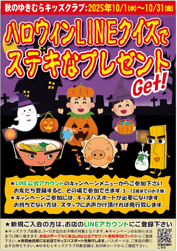 【ゆきむらキッズクラブ】秋のワクワクLINEくじ♪(2025/10/1〜2025/10/31)
