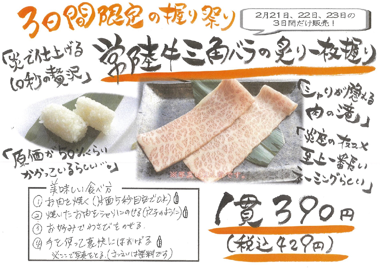 【炎座石下店】3日限定の握り祭り♪連休は炎座石下店で『常陸牛三角バラの炙り一枚握り』をお楽しみください!